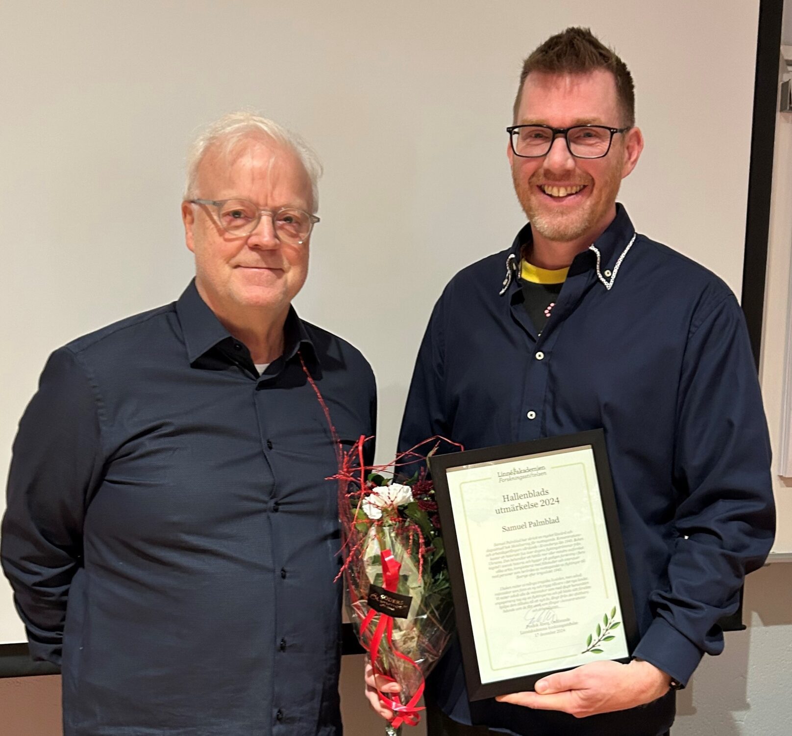 Hallenblads utmärkelse tilldelades Samuel Palmblad i samband med Smålands akademis högtidsmöte på Smålands museum.